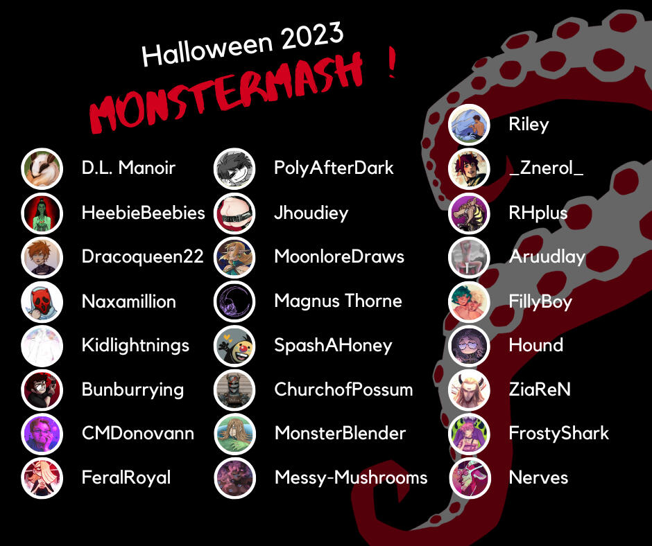 Answer: Because I can and I wanted to. I have a great number of friends (both in indie spaces and in fandom spaces) who often talk about participating in events such as these but are too afraid to do so. They worry about being outed, about being targeted by association, and even about not being "problematic" enough. There are many vanilla events, many of which will lynch contributors found to have a history with problematic content, and there are many dead dove events which essentially push out unproblematic content creators. It creates a rift between these two groups and allows for puritans to sweep in and push for censorship. I wanted a project that promotes both problematic and unproblematic content creators on equal grounds, but there are none. So I came up with the MONSTER MASH!